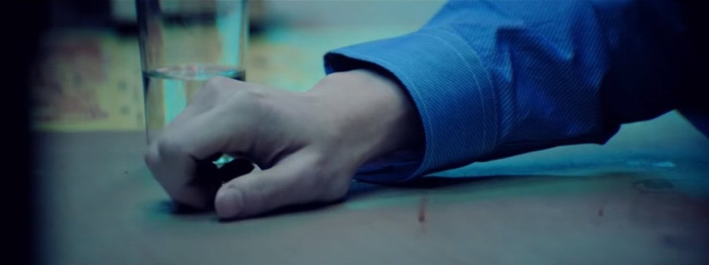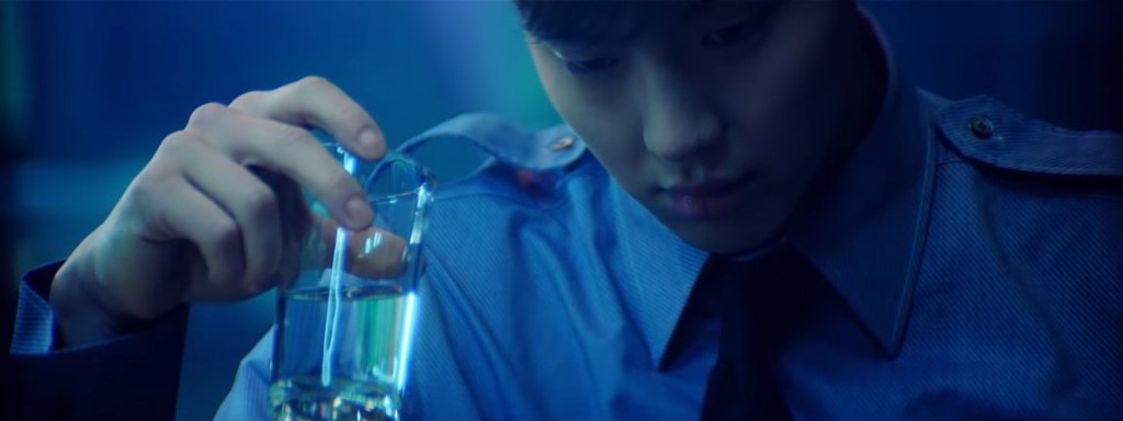 I.M是故意讓基賢來威脅他的,而且在抓住毫無意義的水杯時也做出了反應。