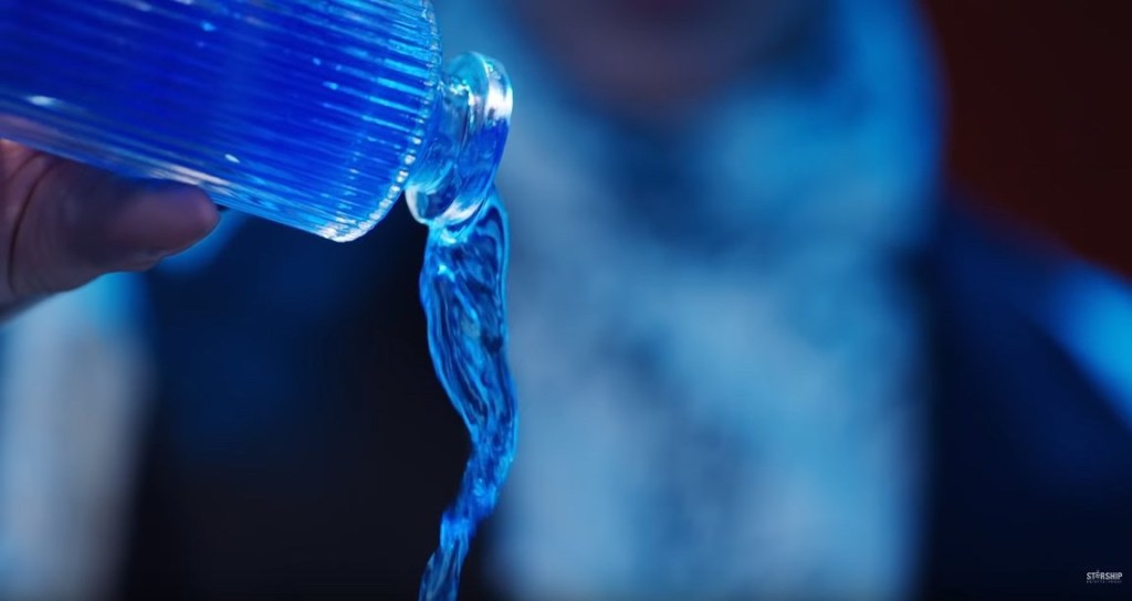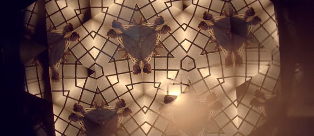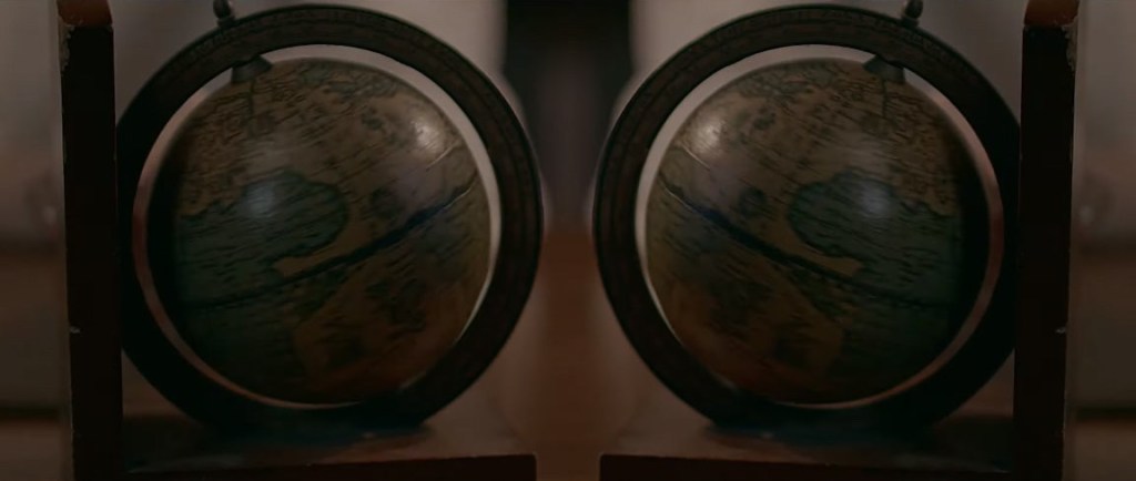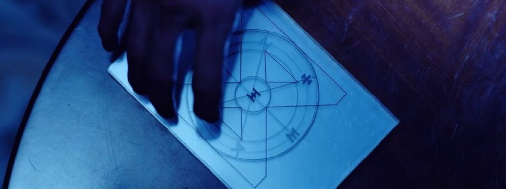 另一邊亨源出現的畫面幾乎都是以藍色背景構成的。亨源不可能與神聯手,猜測是因為他和神是同等的存在才會用同樣的顏色構成。