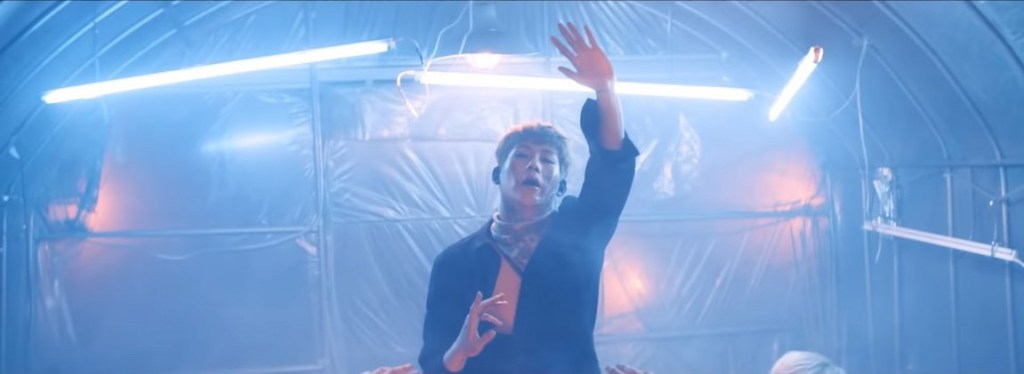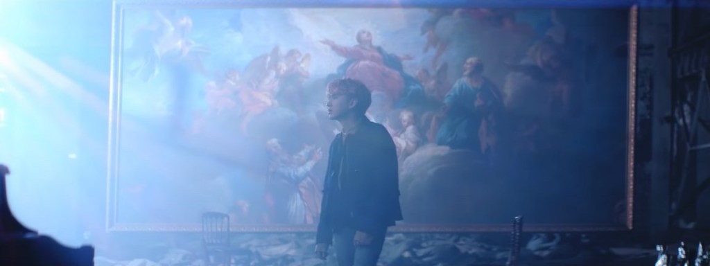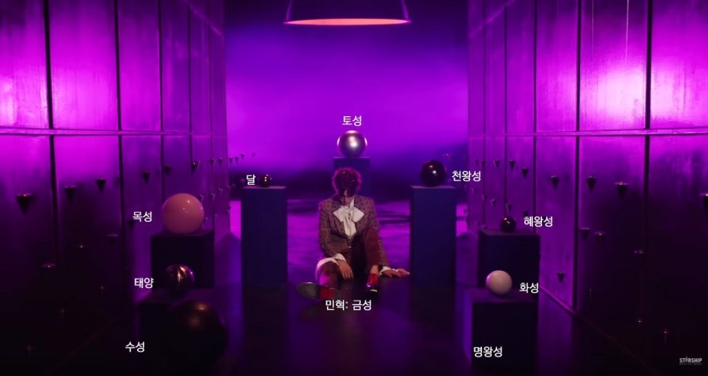 孩子們在現實中忙這些的時候,SHOWNU獨自一人被關在房間。青紫色在基督教中象徵懺悔,或許SHOWNU是自己將自己關進房間懺悔,以證明自己的忠誠 — 神原諒了他。