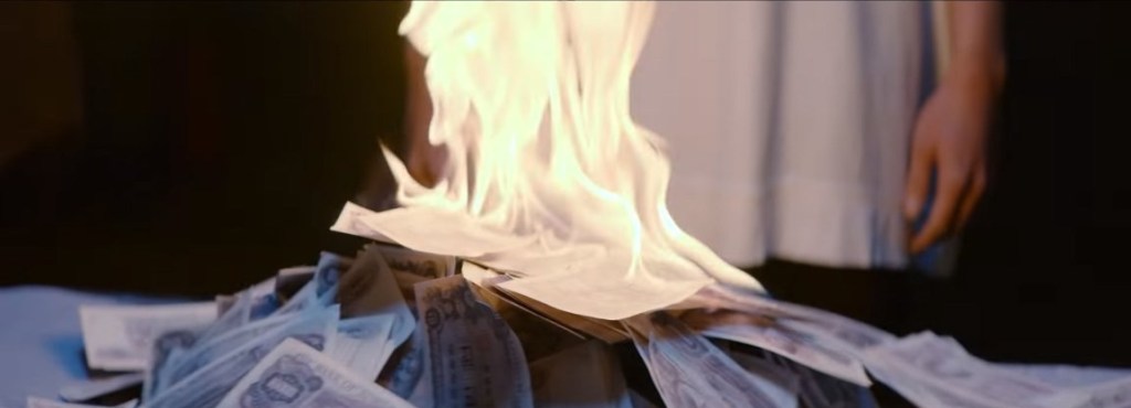 因為他擁有的憤怒的力量比我們想像的還要強大。仔細看<ALL IN>他在燒毀爺爺的遺物和錢的時候,同時也燒掉了藍色花。