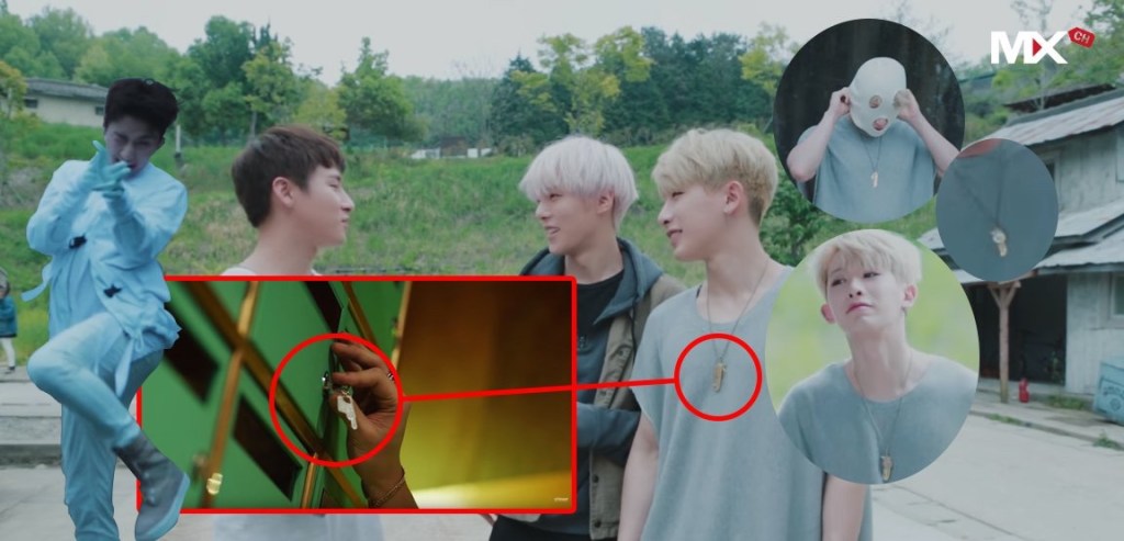 MV中間周憲留意的看向SHOWNU房間的舉動,表示對於同樣是人類的X CLAN,神給的愛卻有所差別而對神感到不滿。