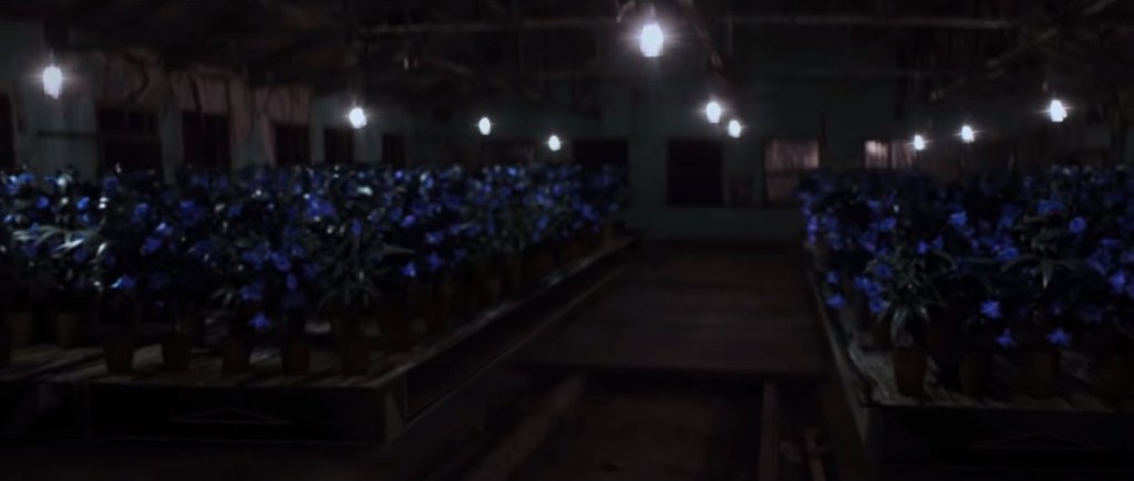 為什麼要偽裝—首先門上畫的’X’的標示,是紅色(惡魔的顏色加點紫色) 與<ALL IN>裡以藍色為主的明亮藍花栽培場不同,這裡黑暗又陰沉。
