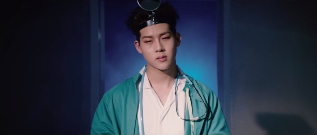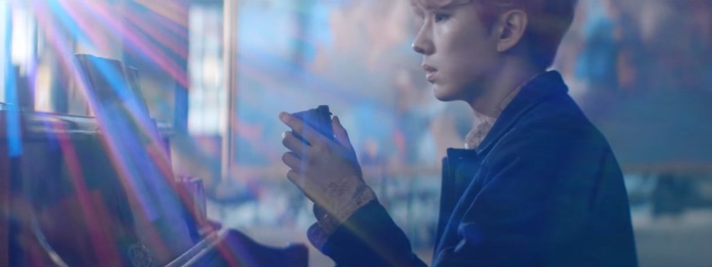 <JEALOUSY>的MV色澤幾乎全程都是以神的顏色-藍色構成,推測<JEALOUSY>的故事為神的降臨,而那個使者正是基賢。