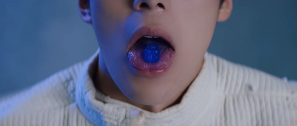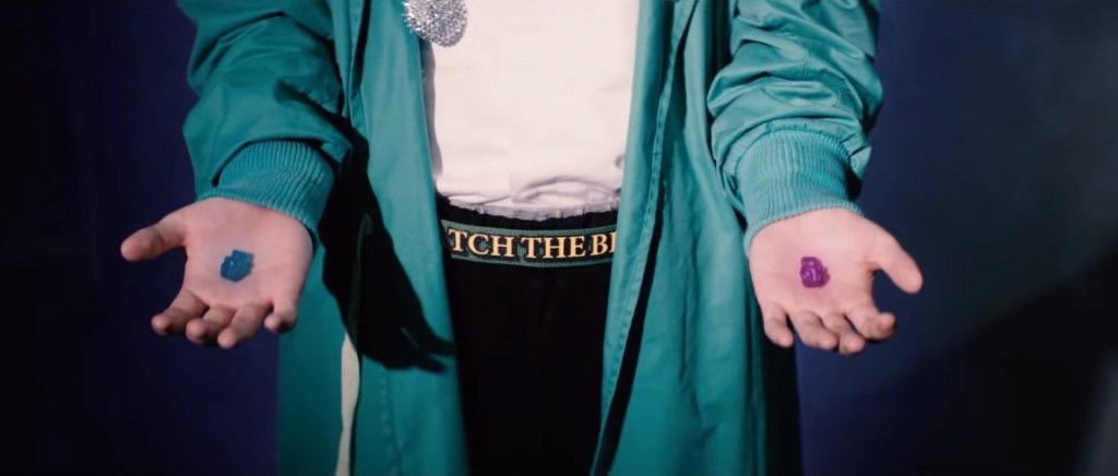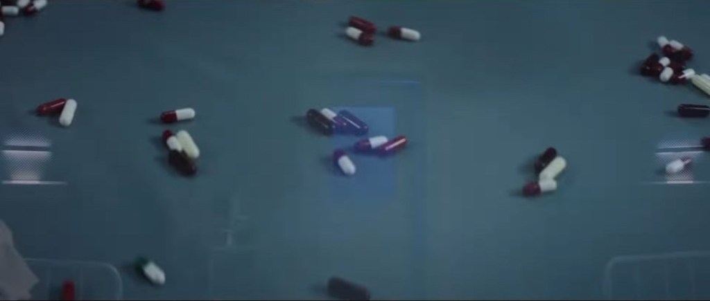 惡魔先是喂他們吃下紅色藥丸,藍色象徵神的死亡領域,餵食紅色藥丸的理由是為了讓他們提高生死境界的警覺。