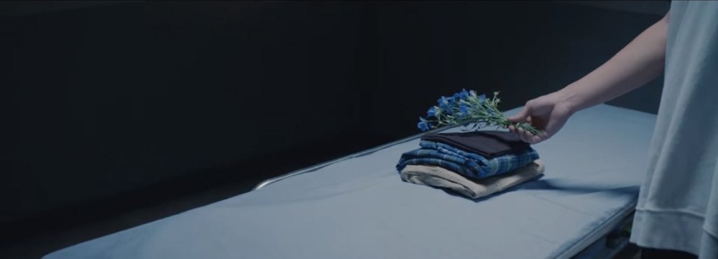 亨源自殺的地方不是被放火的家,這或許是基賢的家,浴室周圍的藍花是他給基賢看見未來的證據,因此花才會是凋謝狀態。