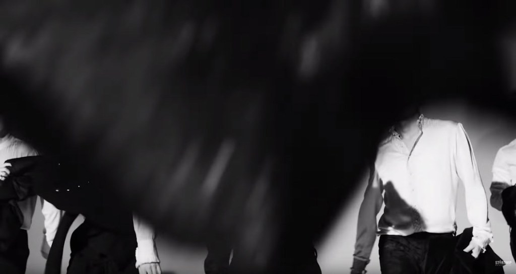 在MV幕後花絮SHOWNU曾提到,自己可以以直覺感受到其他成員的位置。是怎麽辦到的呢? (到<SHOOT OUT>與<ALLIGATOR>時再仔細說明)